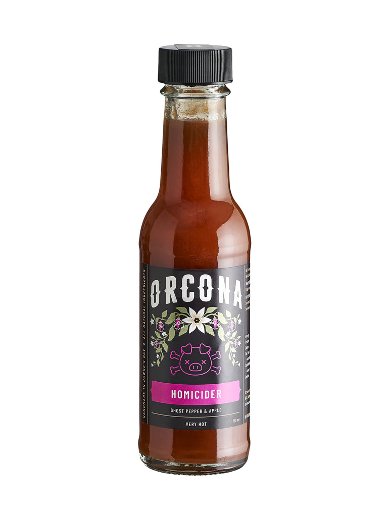 Introducing Homicider – a bold new sauce crafted from Granny Smith apples and fiery ghost peppers. With its perfect balance of heat and fruitiness, Homicider delivers a pleasant burn while letting the bright, clear apple flavour shine through.